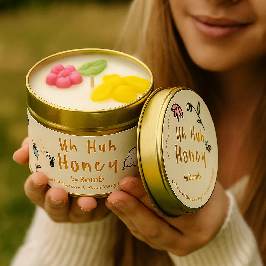 Indulge your senses with the Uh Huh Honey Tin Story Candle, expertly crafted to fill your space with the warm, inviting aromas of Vanilla and Honey. This candle combines the soothing essence of Gold of Pleasure and the exotic floral notes of Ylang Ylang essential oils, creating a harmonious blend that promotes relaxation and a deep connection to nature. With an approximate burn time of 35 hours, it offers long-lasting ambiance, making it perfect for unwinding after a busy day or enhancing your meditation and self-care rituals. Elevate your environment with this luxurious, natural fragrance experience.