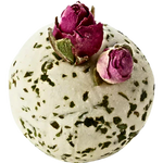 A fragrant, soothing Bath Creamer made by hand with pure Cocoa and Shea butter then rolled in Coriander leaf and decorated with Rose buds. Bursting with pure Vetiver essential oil and Sweet Almond oil to nourish and smooth your skin.